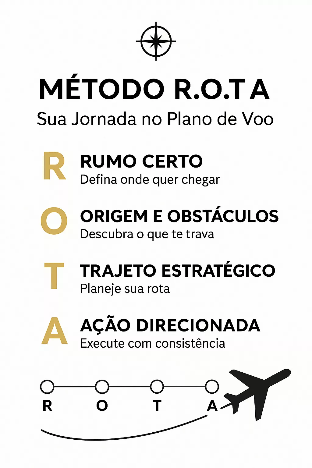Por fim, juntos, vamos construir sua rota. Um plano prático, passo a passo, para você sair do lugar e passar por cada checkpoint, até chegar ao seu destino.