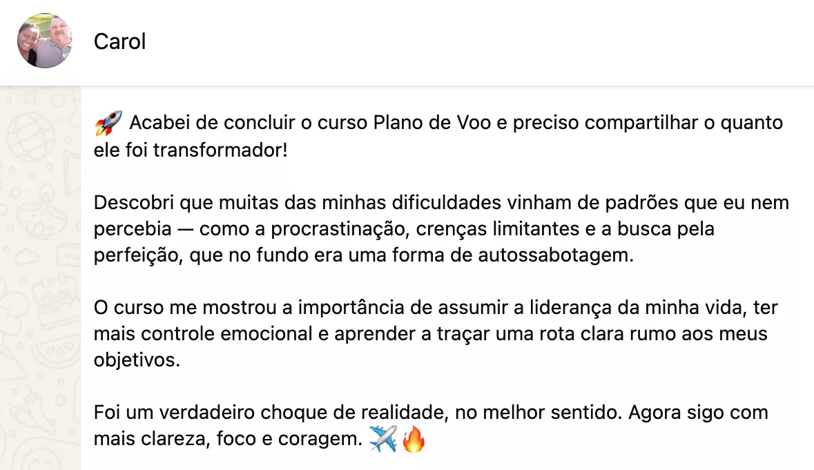 Com o Plano de Voo, você pode mudar de carreira ou reposicionar seu negócio, aumentar sua renda, lançar ou tirar do papel um projeto que está engavetado há anos.